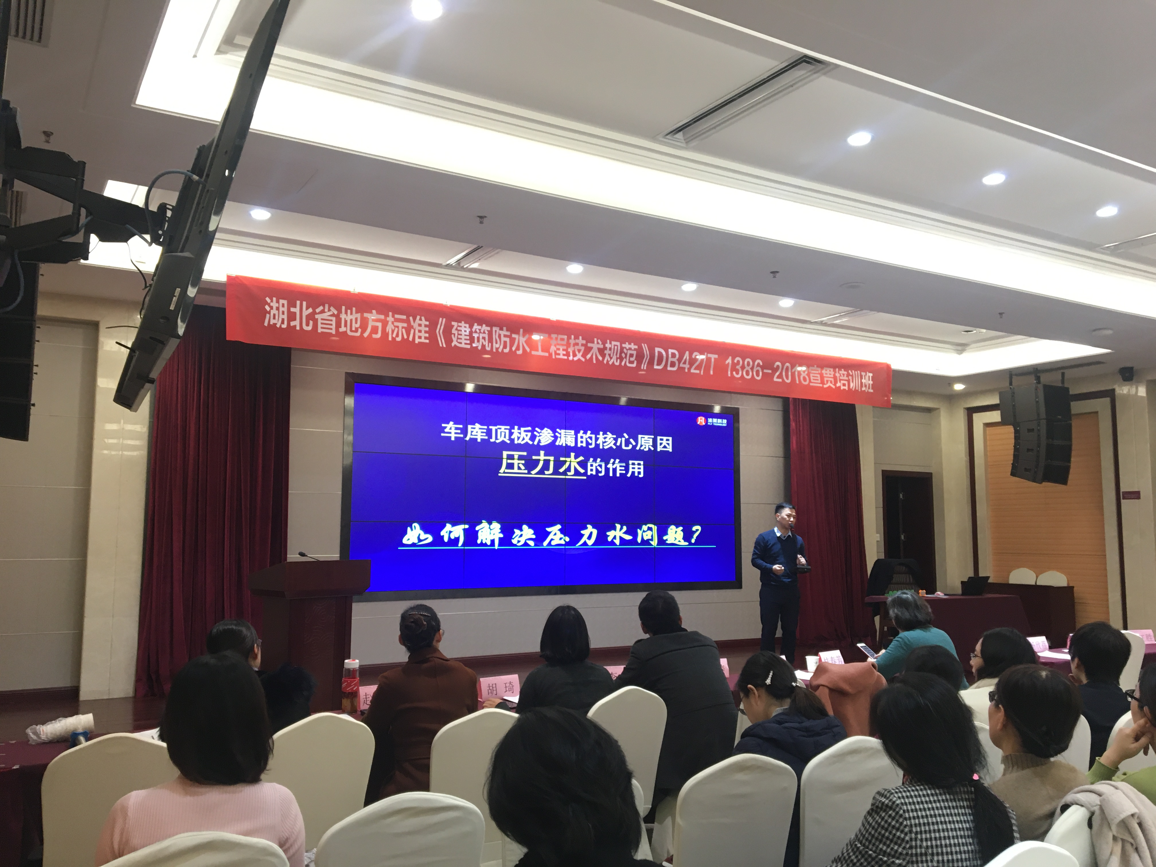 邱红胜、李跃、李斌、江波、程时勤五位专家从框架到内容、从理论到实际、从当下到未来,全面深入剖析了《规范》的主要内容和精髓要义,授课内容分别为:规范标准编制背景、架构、特点;刚柔结合的地下防水工程设计与施工;施工案例(质量通病解析);建筑屋面防水体系及选材应用;如何实现永久防水。